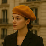 Placez le béret à plat, bord bien posé, puis basculez-le légèrement d’un côté sans creuser de pli marqué. Évitez de pincer toujours la même zone afin de ne pas déformer la fibre.