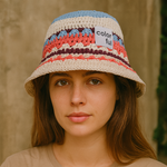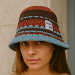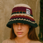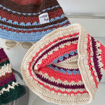 Ce bob en crochet multicolore apporte une touche bohème à votre tenue. Avec ses motifs rayés et sa texture tricotée, il incarne parfaitement l’esprit bohème et décontracté de la saison.