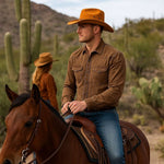 Maintenez le style robuste de vos chapeaux de cowboy avec nos astuces d'entretien. Brossez délicatement pour éliminer la poussière et utilisez un chiffon humide pour les tâches légères. Évitez une exposition prolongée au soleil pour prévenir la décoloration.