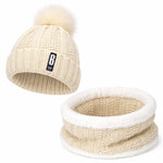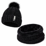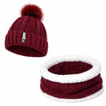 Ensemble Bonnet Femme Pompon en Maille & Écharpe Épaisse