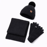 Ensemble Femme Bonnet, Écharpe et Gants en tricot